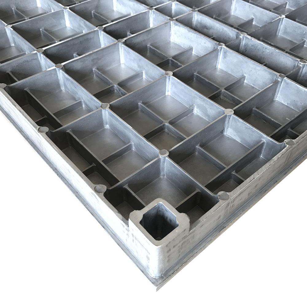 铝合金地板采用高压压铸工艺,铝锭熔化后,经高压压铸机一次性真空压铸成形,融合了铝合金耐腐蚀的特性,地板表面可根据需要进行环氧树脂喷粉或镍铬电镀,从而表面达到柔光、防腐、耐磨效果。